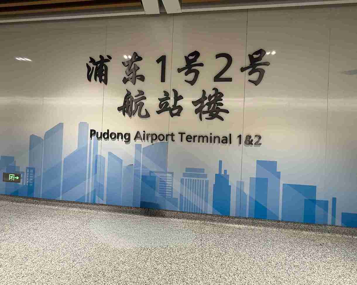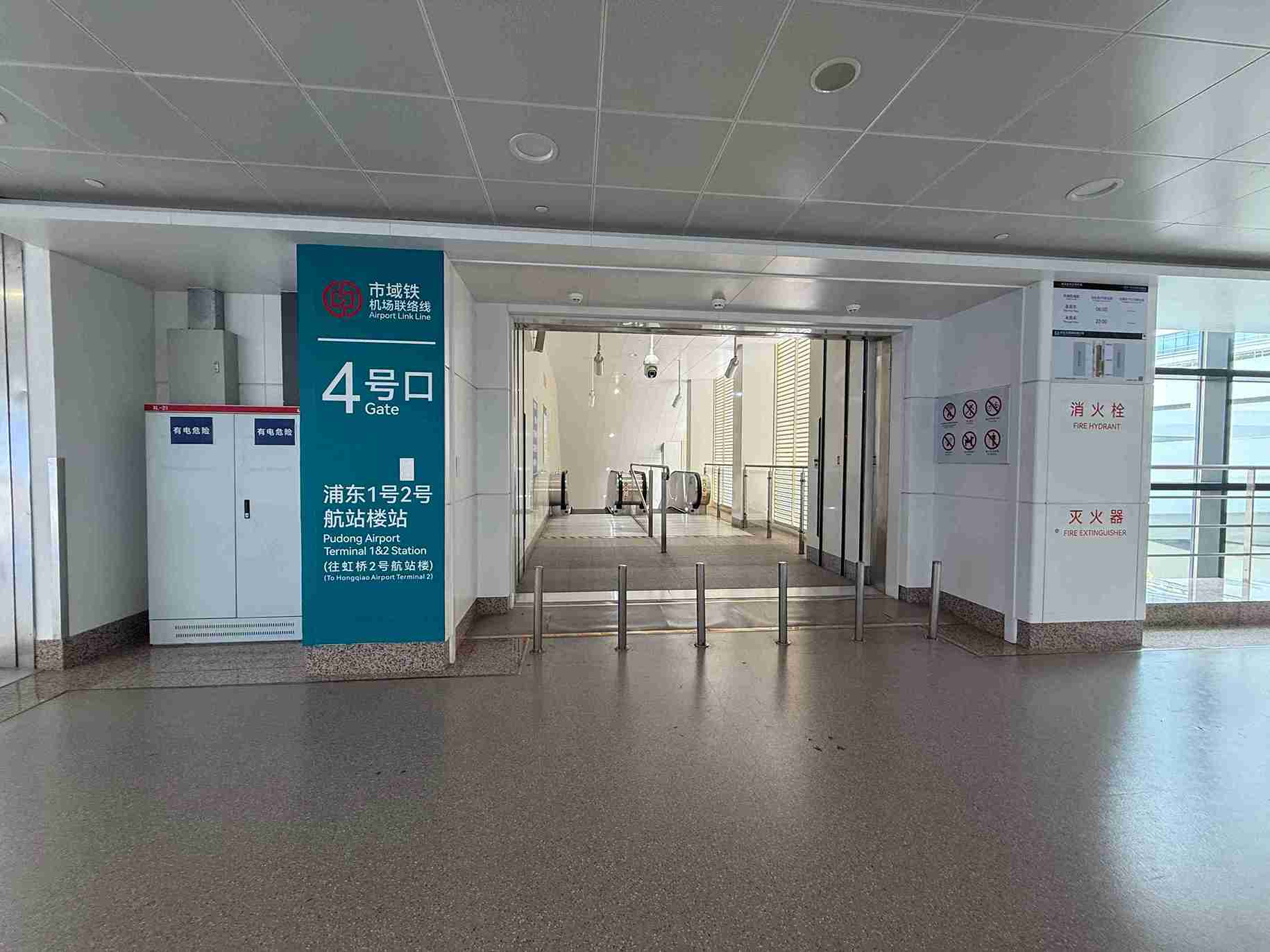 以我搭乘的長榮航空從台北松山機場飛抵上海浦機場 T2 航站樓,出關後,有很清楚的指示標示「市域鐵」(也就是市域線),行走方向與前往搭地鐵或磁浮列車是同方向,依著指示牌前往4號口,搭手扶梯下樓。