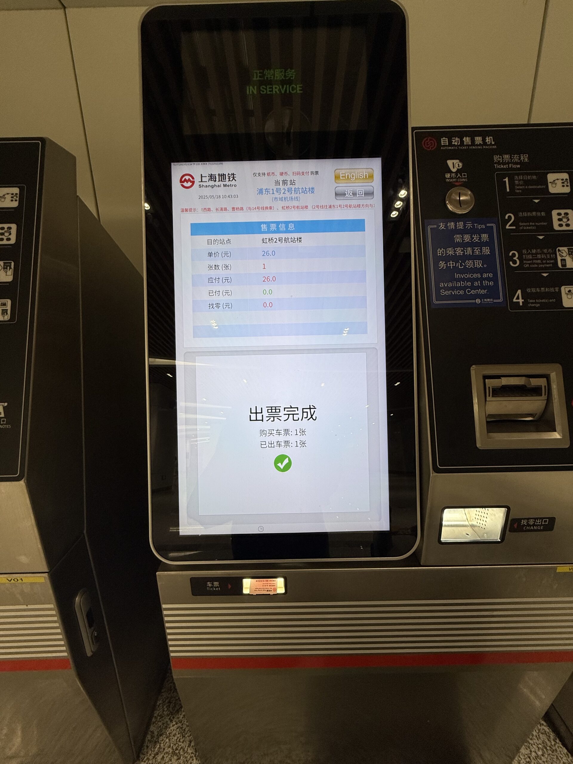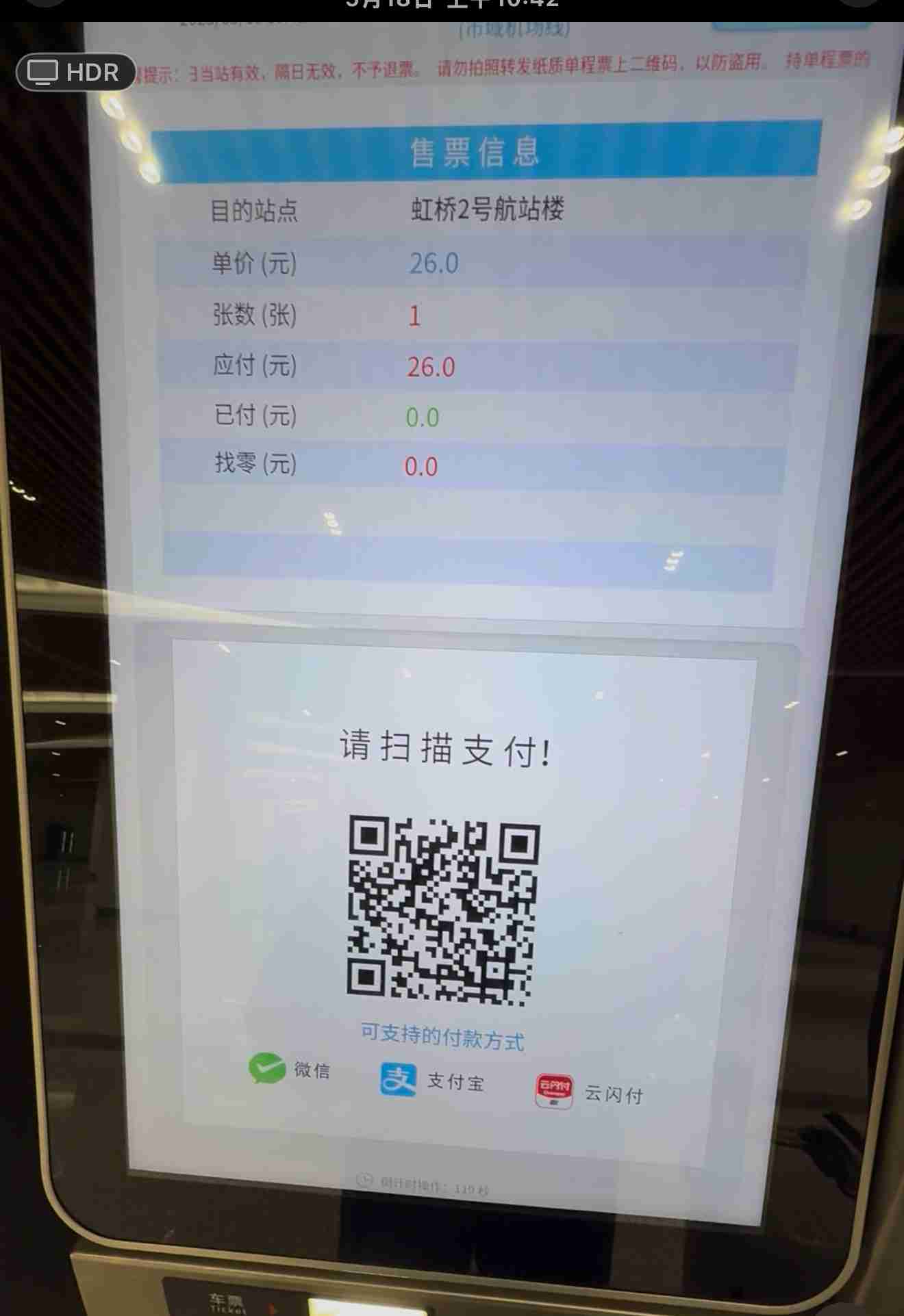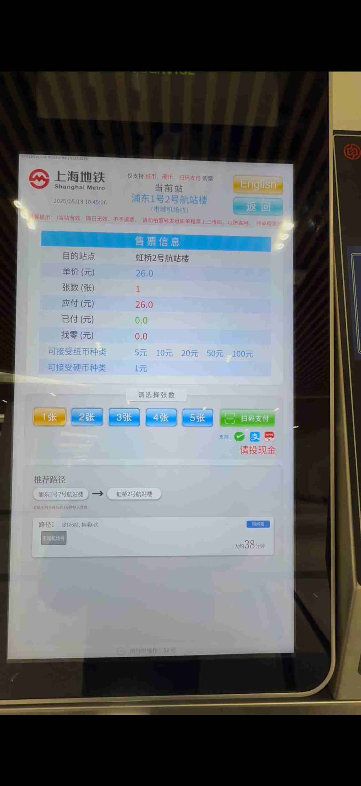 票價從浦東到虹橋,僅花費26元人民幣
