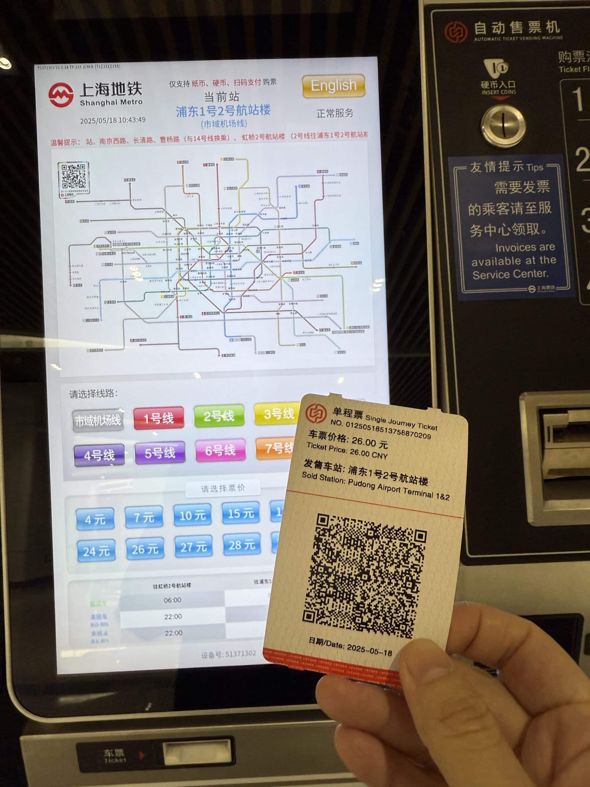 購票方式可採用:現金、手機支付、公共交通卡、Metro大都會App、微信小程序等,甚至是上海的「隨申碼」也都能使用。對於經常往返兩大機場的商務旅客,還可使用電子計次票可享7折優惠,20次套餐30天有效。