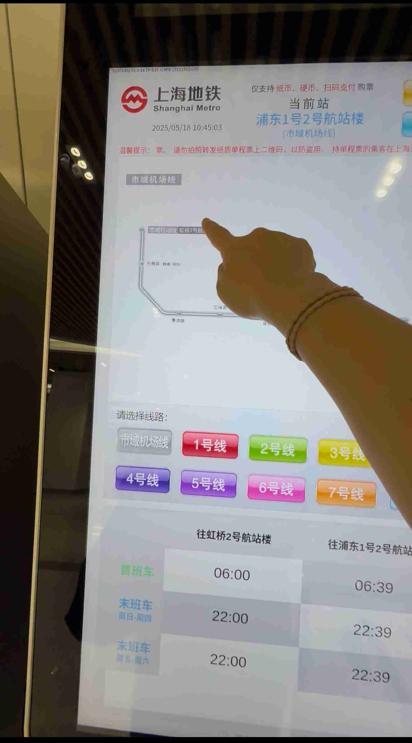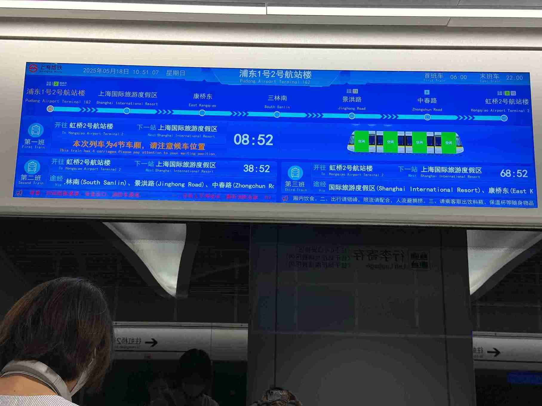 市域線的營運時間為首班車從「浦東1號2號航站樓站」早上6點首發,末班發車時間為晚上10點00分,每15分鐘一班的發車頻率,基本上涵蓋了大部分航班的起降時間。無論是趕早班機還是深夜到達,大致都能搭乘到便捷的機場接駁服務。