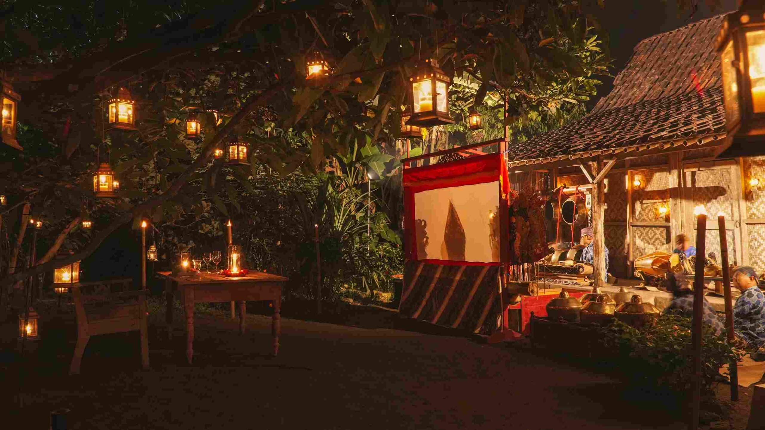 - 「村莊皮影戲晚宴」(Wayang Dinner in the Village):這場體驗位於附近的村落,以典型的爪哇Limasan建築為舞台,為賓客呈現樸實而真誠的氛圍,使其深入體會當地的文化底蘊與生活風貌。