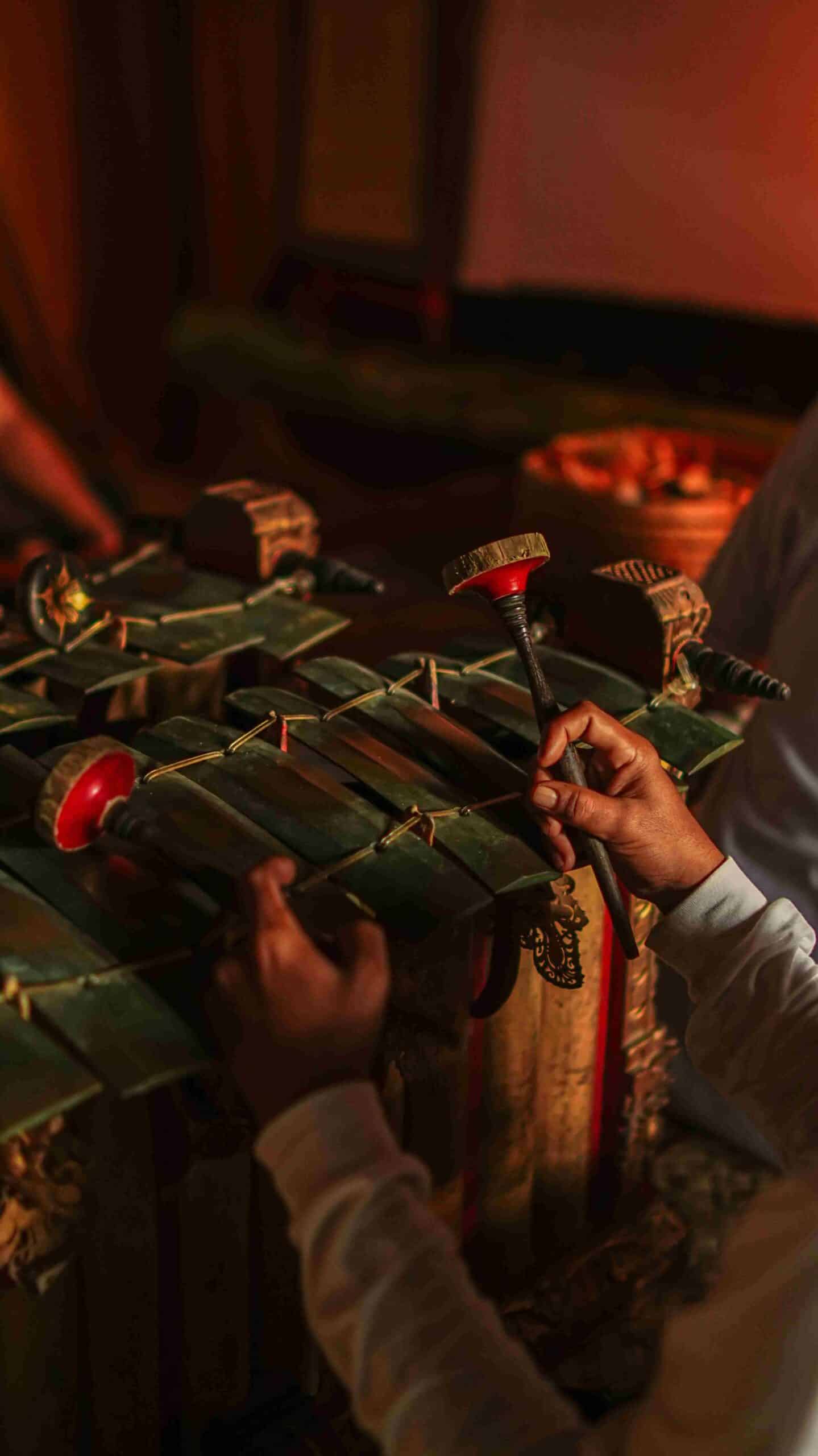無論選擇哪個場地,皆能沉浸於說故事、音樂與精緻美饌交織的和諧氛圍。這場Wayang演出由世代傳承爪哇文化的藝術家族呈現。資深皮影大師Bapak Bandel自度假村開幕以來持續演出,他對爪哇藝術的熱愛深深影響家族,使這項傳統得以延續。演出中,Bapak擔任「dalang」(皮影戲大師),其妻Ibu Wiwik以歌聲詮釋「pasindhèn」(爪哇吟唱者),兒孫們則組成gamelan樂隊,共同打造充滿韻律的夜晚。