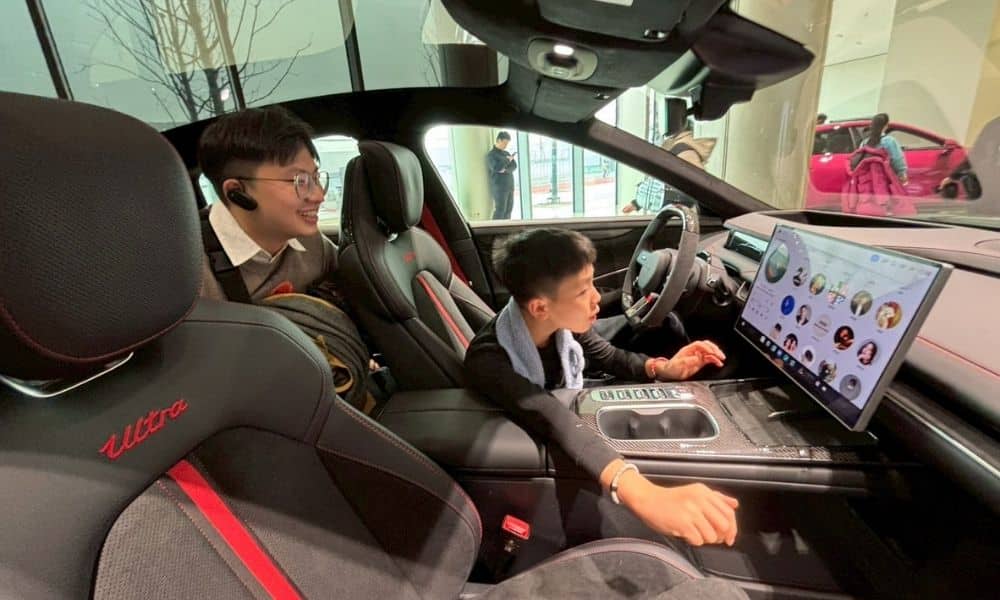穿過小米商店後,十多台各色小米電動車在展廳中閃閃發亮,隨便客人拍照、坐進駕駛座或客座體驗。