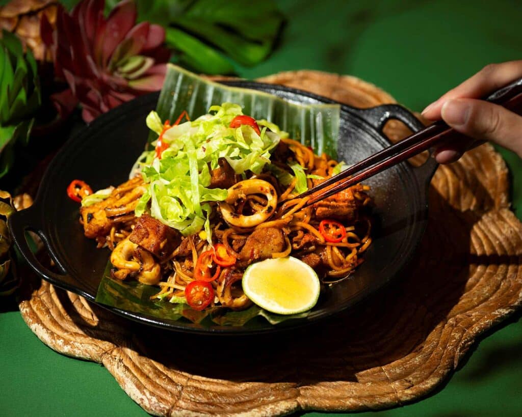 「馬來炒麵」精髓在於大火翻騰的「鑊氣」,其香辣酸甜的醬汁與萊姆汁的鮮明尾韻,正是街頭最迷人的滋味。圖/台北遠東香格里拉提供