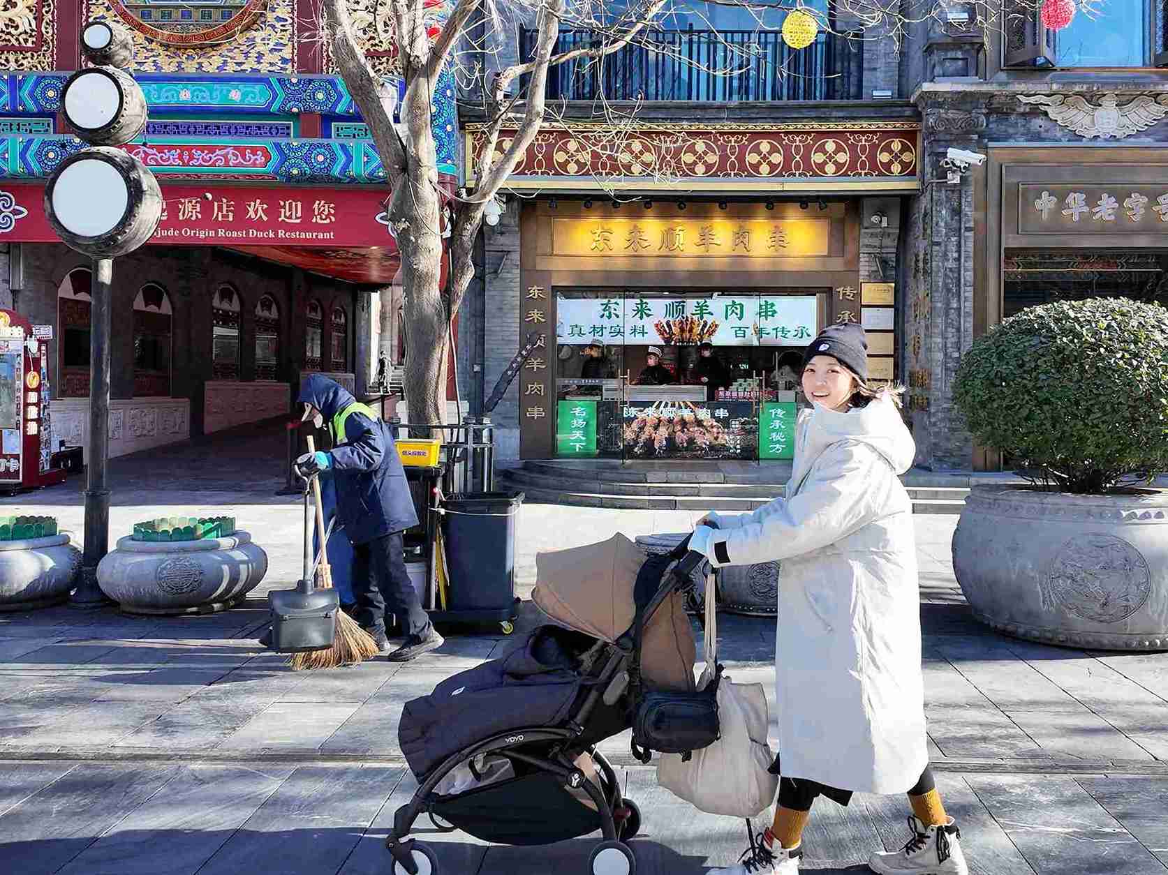 北京是這趟旅程最具歷史厚度的城市。我們入住古北水鎮一晚,白天漫步古鎮、欣賞石板路與灰瓦屋簷,入夜後背著BoBo,在零下10度的低溫中爬上司馬台夜長城。燈光沿山脊延伸,彷彿將歷史與當下連結成一條發光的線,那一刻的寒冷與壯闊,是城市裡無論如何都感受不到的震撼。回到市區後,我們走過前門大街與大柵欄的老城肌理,再穿越故宮紅牆金瓦的歷史廊道,最後來到三里屯,看見北京當代生活最年輕的一面。北京動物園則是整趟行程中節奏最慢的一天——BoBo對動物的好奇反應,讓旅程多了一份純粹的家庭溫度。