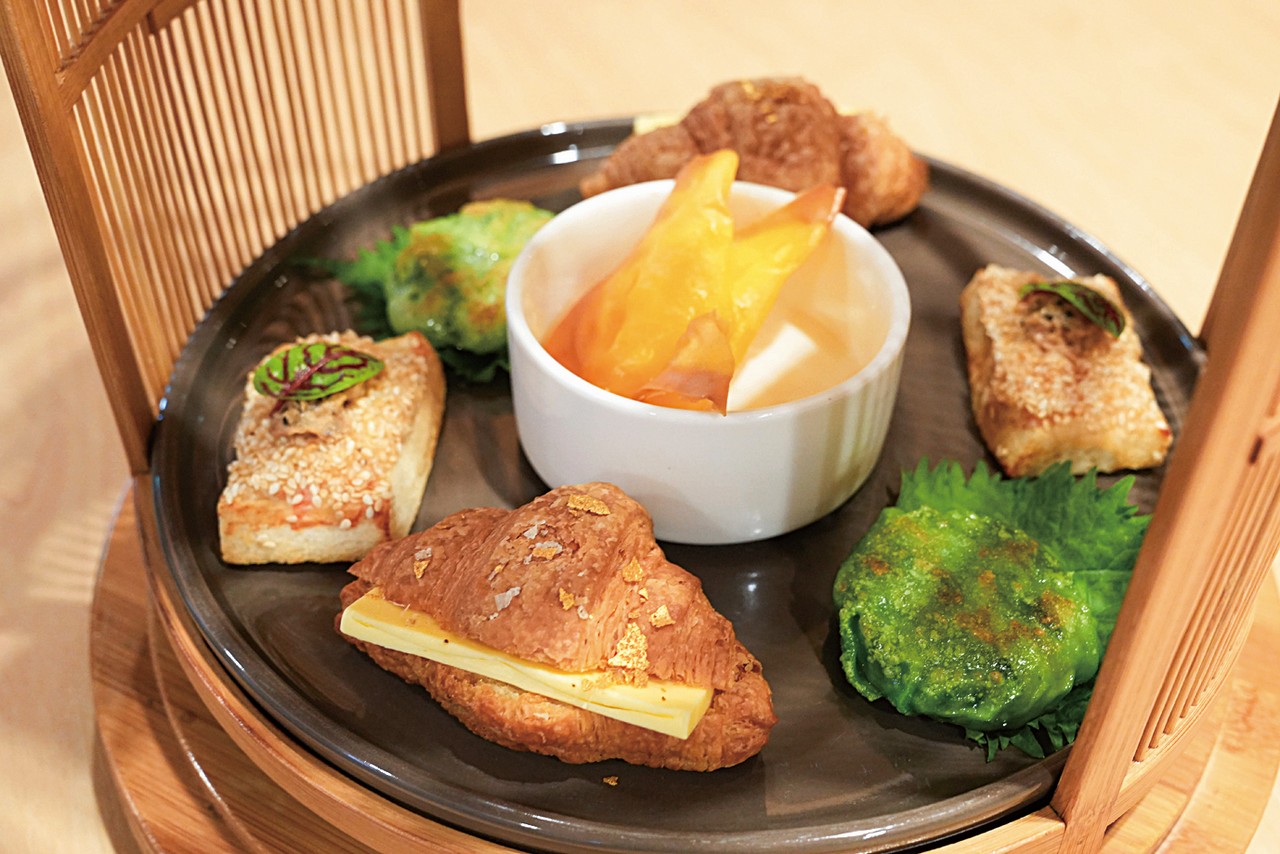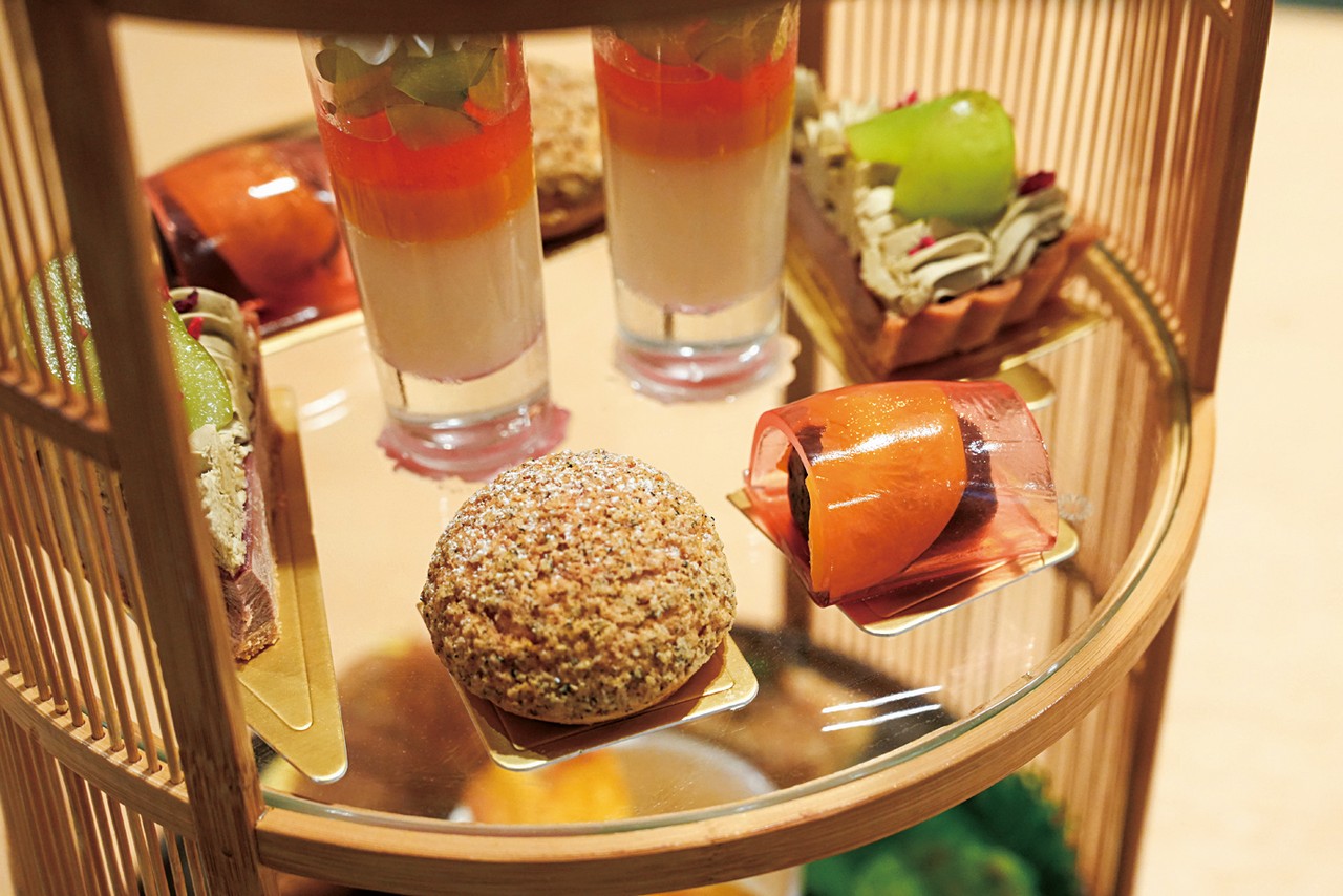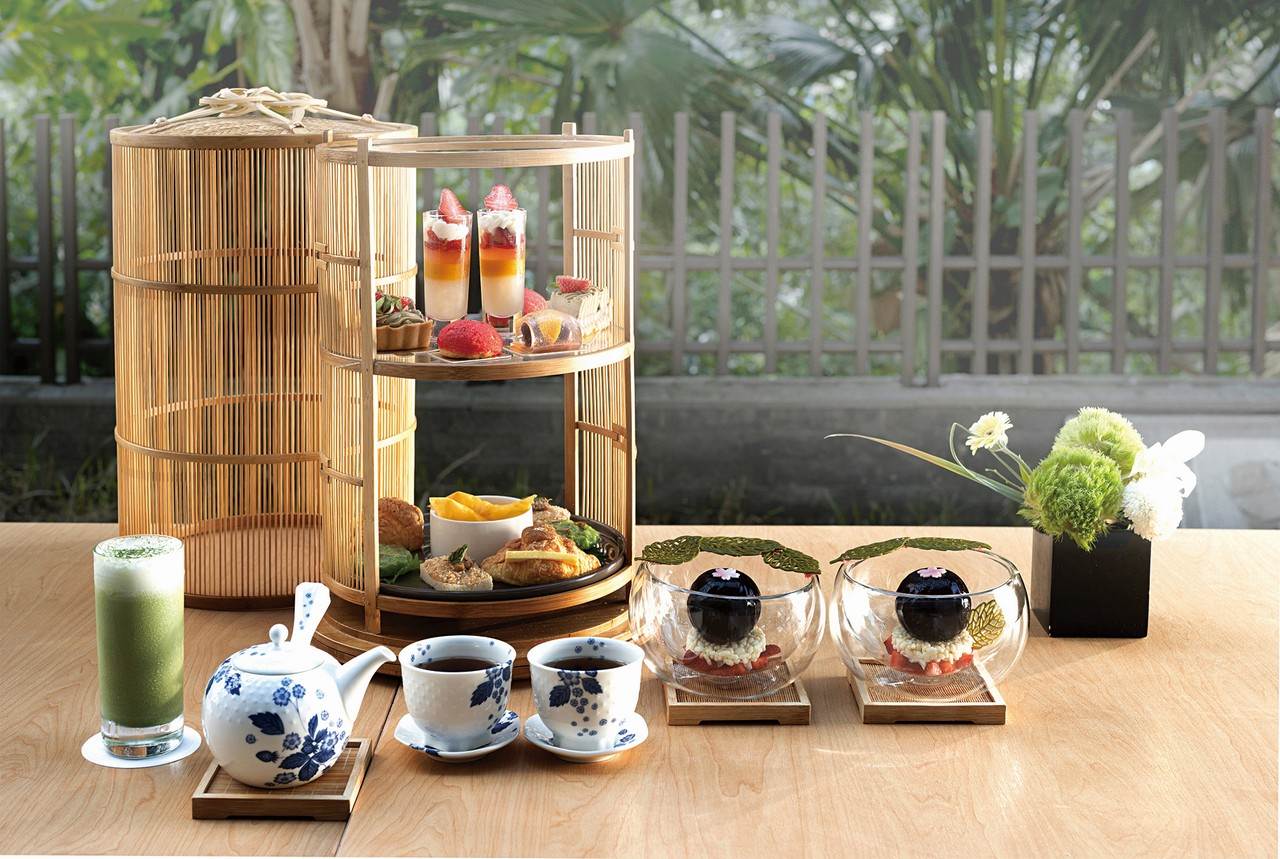 蘊泉庄附設餐廳「日蘊堂」主打新派粵菜,融合粵和洋料理精華,創新味蕾感受。下午茶時段的「茶蘊席」以竹山匠師手作的鳥籠盛裝,包括迷你冰火波蘿、鮪魚松露蝦多士、翡翠海鮮餃、芒果金三角、日蘊堂水果繽紛杯、焙茶莓果派、焦糖卡士達泡芙、水蜜桃和果子凍與櫻桃牛奶巧克力等,融入蘊泉庄的自然養生概念,不會過於甜膩,而帶有自然的清新口感,大獲編輯部一致好評!