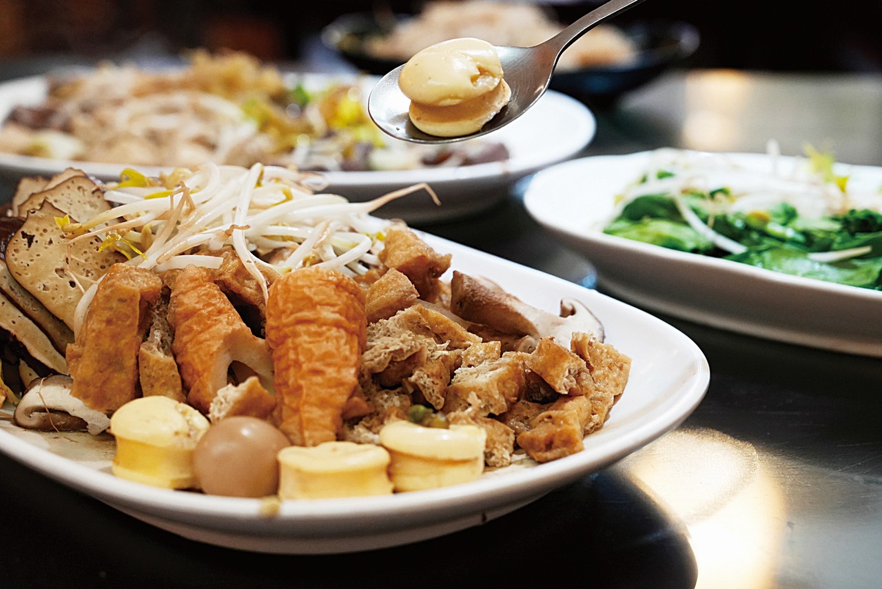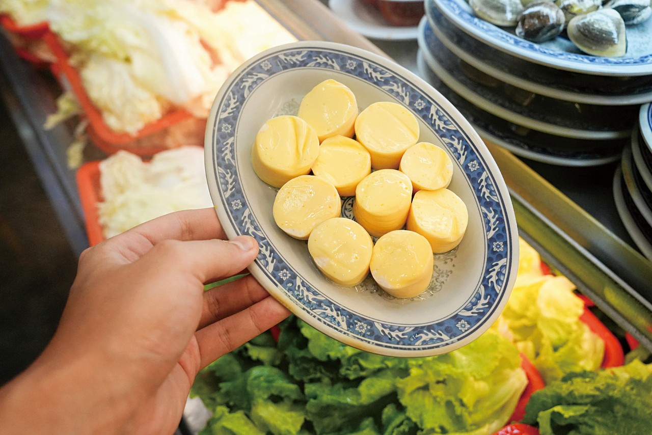 蛋腸 口感外脆內嫩,質感綿密 呈鵝黃色的短管狀,受熱後外型如馬卡龍,入口蛋香與湯汁四溢 常見於滷味或火鍋,適合入湯以增加口感 在地滷味攤、火鍋店