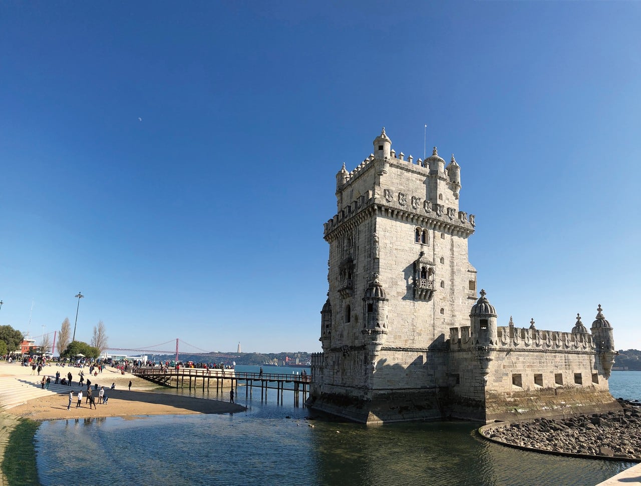 紀念碑不遠處,貝倫塔(Torre de Belém)沉穩守護在太加斯河口,迎接來往的船隻與遊人。這座五層樓高的防禦工事,是國王曼努埃爾一世為了紀念達伽馬抵達印度下令建造的,設計融合摩爾與文藝復興風格,抵禦外敵之餘,同時也見證了大航海時代無數船隻的出行與返航。貝倫塔其後又被用作海關、電報站、燈塔,儲藏室甚至被改建為地牢監獄!1983年連同熱羅尼莫斯修道院獲聯合國教科文組織評定為世界文化遺產,2007年則被票選為葡萄牙七大奇跡之一。登上塔頂,視野遼闊,彷彿自己也成為一位航海者,準備出發,前往世界盡頭。