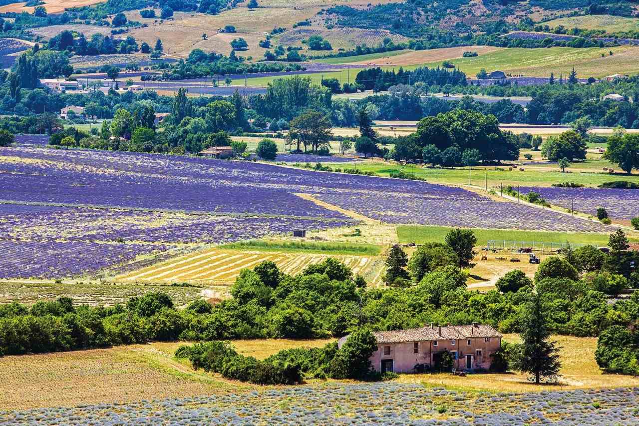 旅程第4日、第5日一路上溯,深入普羅旺斯地區。所以選擇價格高、遊客多的夏季出發,除卻天氣最晴朗、美酒最醇厚以外,薰衣草花色最豔異自然也是原因之一。搭乘一列遊園專車梭織在維維耶的薰衣草田間,只見一幅紫色地巾,上接稠得近乎蜂蜜質地的藍天,縱然烈日灼人,也覺得分外珍惜。因為再過不久,當薰衣草進入採收季節,紫色地巾將會回復成了一片乾燥而蒼茫的綠植,花期僅僅2個月,此時不訪,更待何時?