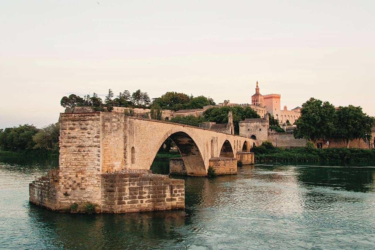 提及藝術,不得不走訪亞維儂藝術節的主辦城市。14世紀,法蘭西王國與神聖羅馬帝國間爆發政教衝突,亞維儂成為七任教宗聖座所在地(因而當時亞維儂與梵蒂岡同為聖城),不僅整座城區入列世遺,同時獲頒《米其林旅遊指南》最高級別推薦。由一位小牧童起心動念發起籌款捐造,橫跨隆河兩岸的聖貝內澤橋,係古代朝聖亞維儂的甬道,如今儘管斷去半截,反而饒富韻味,著名童謠〈在亞維儂橋上Sur le pont d’Avignon〉即以此為背景。