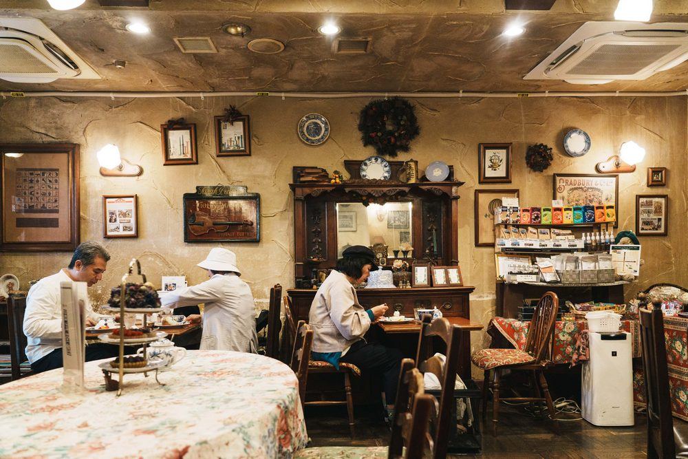 天神橋筋一隅,英式農村風格的西洋茶館,無論內用外帶皆需要登記排隊,只因門口陳列的蛋糕實在太吸引人。不若百貨公司地下街的精巧,反而帶有鄉間媽媽親手製作的暖意,讓人只想一塊接著一塊。