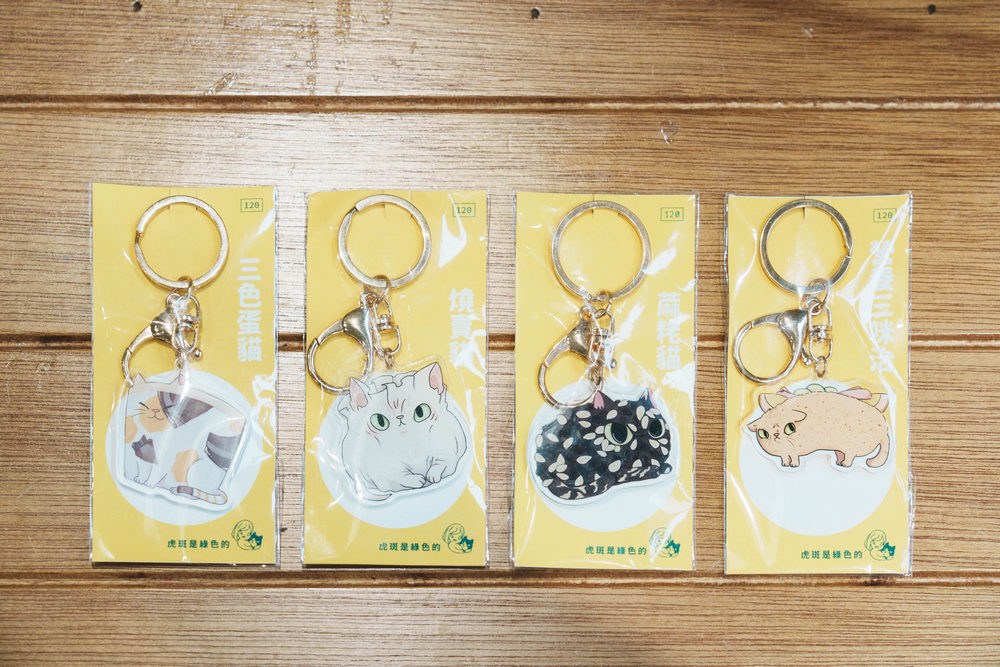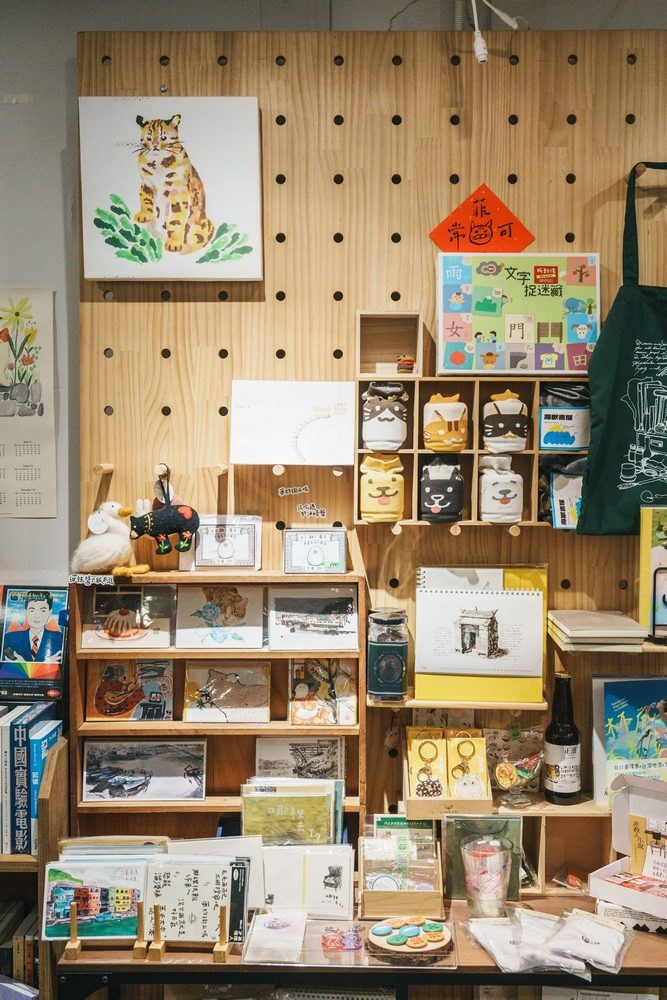 小獸書屋規模小而巧,關注面向以自然探索、生態環境、動物議題為主。店內除了選書外,選物也佔了大半空間,各式徽章、鑰匙圈、明信片錯落有致地陳列在小小的空間中,每個都幽默可愛。其中又以在地藝術家「虎斑是綠色的」將基隆美食蔴、營養三明治等做成貓造型鑰匙圈最令人印象深刻,值得各位毛爸毛媽們前來挖寶。