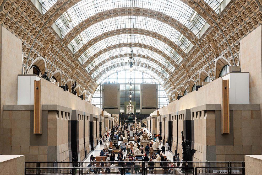 一般而言,20世紀初期的車站多是露天的,為了1900巴黎世博而建的奧賽火車站,卻在軌道上方加裝穹頂,好讓乘客出入免於日曬雨淋。無奈科技日新月異,月臺長度早已不敷當時新型火車使用,面臨棄置的車站歷經層層關卡,重新設計改建,收容來自羅浮宮、龐畢度的數千件館藏。於是參觀奧賽,有別於尋常「循規蹈矩」的展覽空間,眼見各色雕塑星散在細長的挑高長廊,彷彿不是人在看展,而是展在走秀。