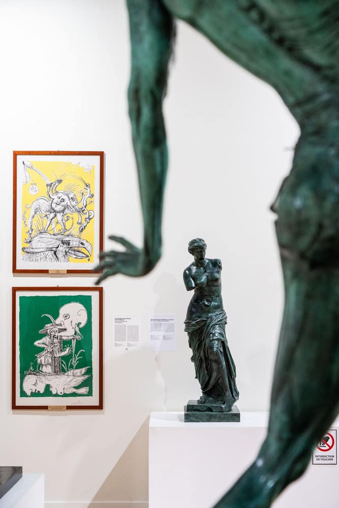 達利與畢卡索、米羅同為西班牙三傑,對於科學與心理的強烈興趣,使他遁入超現實主義的脈絡當中,鑽研意識與行為之間的連結。包括繪畫、版畫、速寫及雕塑作品,大多都有變形扭曲、違反常理、荒謬突梯的造型。