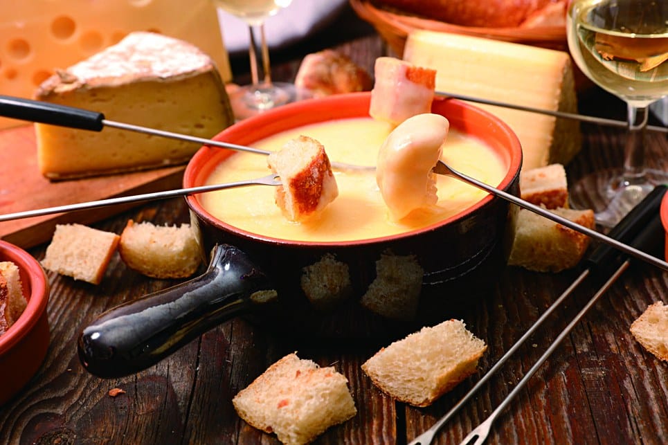 歐洲最具代表性的「火鍋」!誕生自阿爾卑斯山脈的Fondue,法語中意指融化。顧名思義,料理採用五至六種起司,將其融化後加入葡萄酒煨煮。品嘗時,以長柄叉子叉麵包等配料蘸起司。