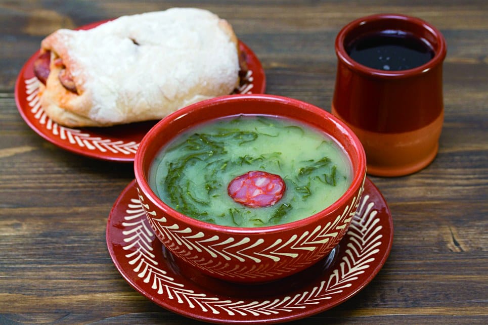 Caldo verde,又名葡萄牙翡翠湯。Verde意為綠色的,湯品顧名思義呈現綠色。其色彩來自羽衣甘藍或其他綠葉蔬菜,另外還包含馬鈴薯、橄欖油、洋蔥,並以大蒜、黑胡椒和鹽調味。