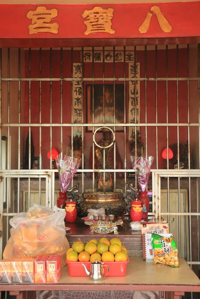 大灣八寶公主廟,祭祀一名西洋女子模樣的神祇,供品是咖啡、紅酒及女性用品。有人認為八寶公主來自荷蘭,《斯卡羅》原著小說作者陳耀昌則認為祂是羅妹號的船長夫人。當地居民說,八寶公主特別照顧墾丁的外國遊客喲。© 陳育陞/旅讀