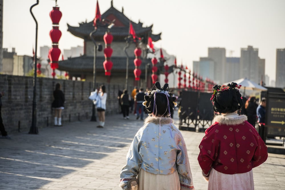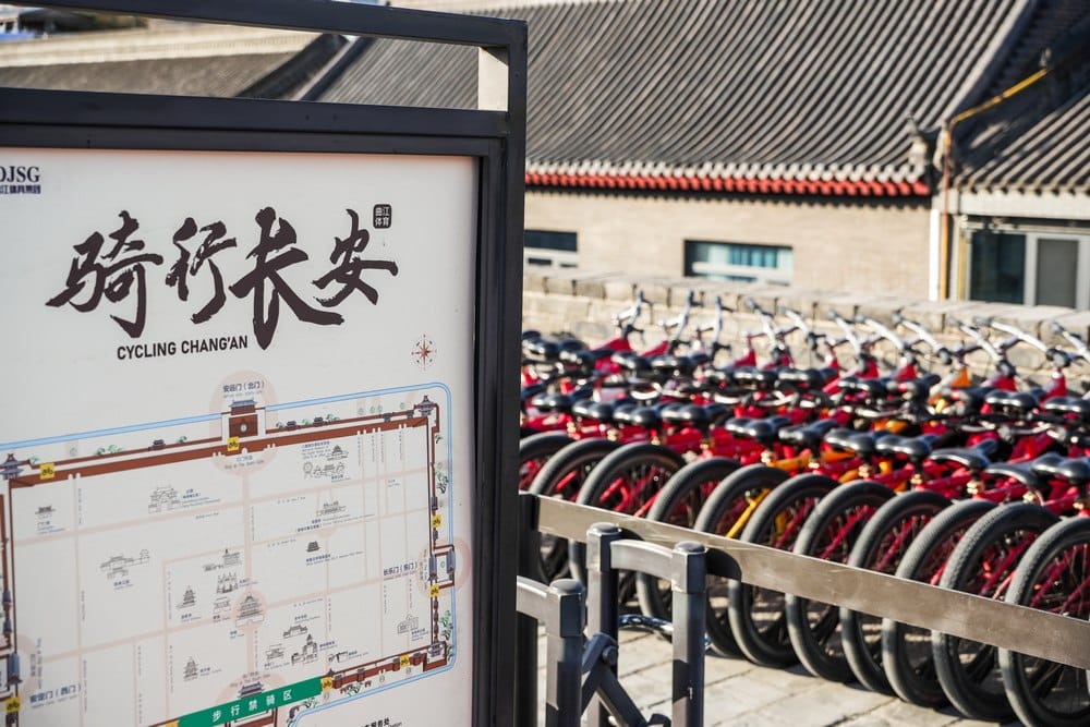 登上西安城牆,厚重磚石承載著千年記憶,也展開俯瞰古都的最佳視野。沿著寬闊城垣騎行,鐘樓與現代高樓次第映入眼簾,歷史與當代在眼前交錯。當夕陽漸沉、華燈初上,一場穿越時空的漫遊悄然展開,為西安的一日旅程留下悠然餘韻。