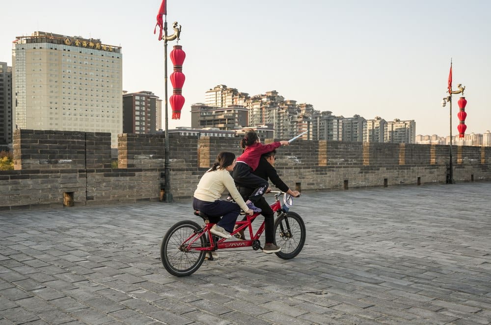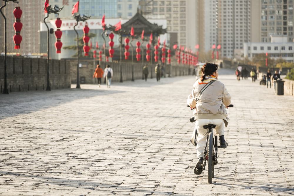 午後登城,光線逐漸柔和,亦避開正午曝曬,磚面在斜陽映照下呈現溫潤色澤。不少遊人選擇換上古裝,在城牆上漫步,或與宏偉的城門石階合影留念。但是,要說最推薦在城牆上做的一件事,還得是騎自行車。