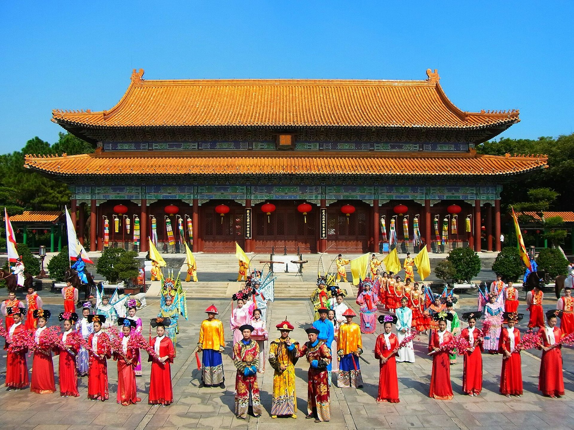 圓明新園是以北京圓明園為藍圖而建的園區,1:1比例復原北京圓明園的部分景點,佔地大約1.39平方公里。園內有超過18個特色景點,建築主要分為中國明清古典園林建築、江南園林和古典式西洋建築,有方壺聖境、曲院風荷、萬方安和、海晏堂、遠贏觀等景點。園區內更有大型表演是《大清王朝》和《大清海戰》,每個中國古建築景區內亦會有不同小型表演,例如《臨朝聽政》、《乾隆福海游》、《清宮慶典》、《編鐘樂舞》等。