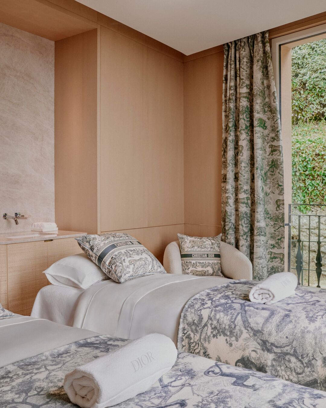 為提升康養體驗,Splendido推出全義大利首間常設Dior Spa,結合兩大優雅傳奇,締造獨一無二的合作。位於綠意盎然的波托菲諾自然公園內,這座靜謐空間邀請賓客沉浸於取材利古里亞海岸與自然節奏的全方位療癒旅程。Dior Spa Splendido位於酒店二樓,結合半戶外設計,配有四間療程室及靜謐屋頂露台放鬆空間,讓賓客徹底釋放身心。精心設計的療程揉合周圍景致與地中海氛圍,量身打造個人化療癒體驗。這場全新康養篇章亦延伸至Jardin des Rêves——隱身花園深處的露天療癒空間,旅人得以在自然中尋回內外平衡的靜謐體驗。