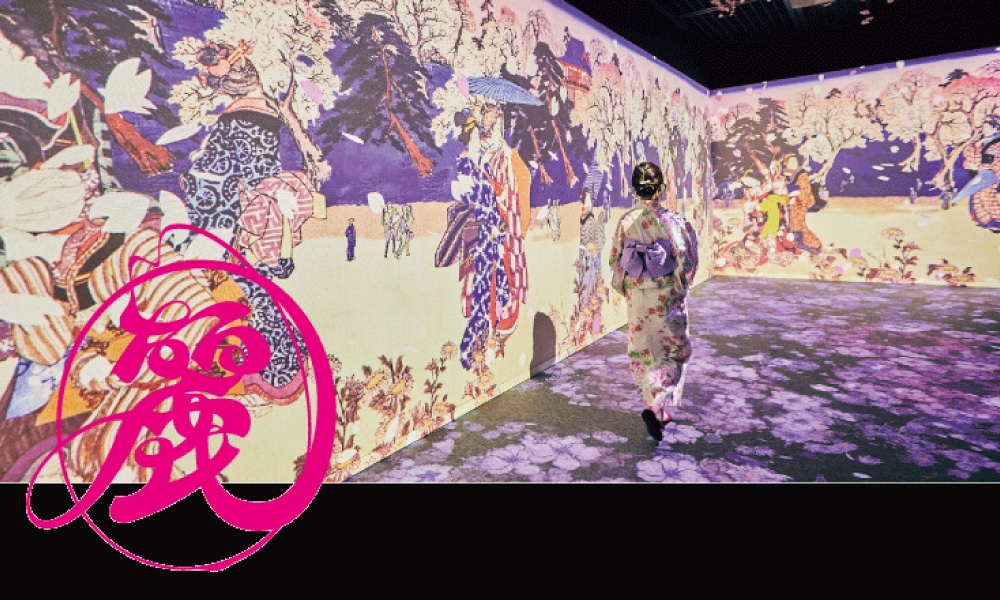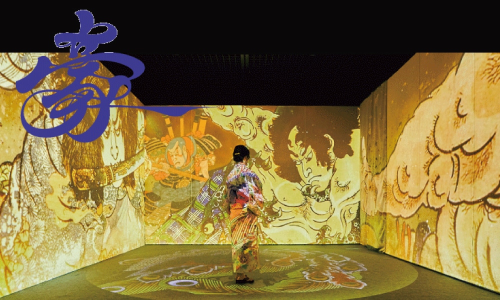 展覽結合實體名畫展出與唯美炫目的3D CG動畫、投影映射技術,搭配濃濃東瀛風情的原創音樂,打造全方位沉浸式互動空間。