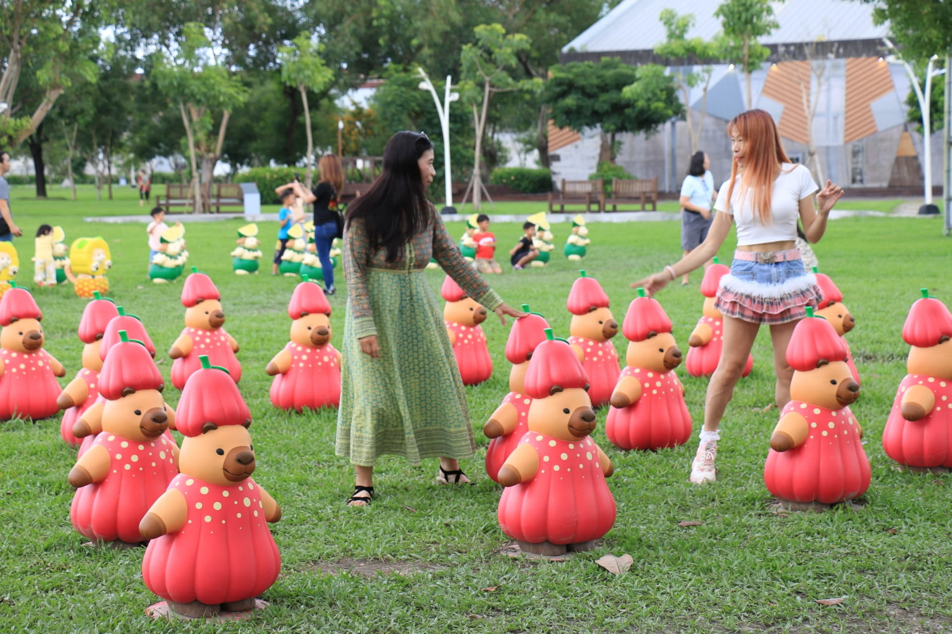 超巨型的「香蕉酷COOL」大熊躺在水池邊慵懶曬太陽,一舉一動都讓人想抱緊處理!草地上的「蓮霧蹦BUMP」則是小朋友的最愛,最受歡迎的「卡皮巴拉」水豚化身甜蜜蜜蓮霧小精靈,搖身一變成為森林裡的氣氛製造機,甜到心坎裡!還有行動派小隊長「檸檬狗」、樂天派偶像「鳳梨漾」、慢熟系大哥「芒果醬」,一同創造歡樂無比的放電夏日狂歡樂園!