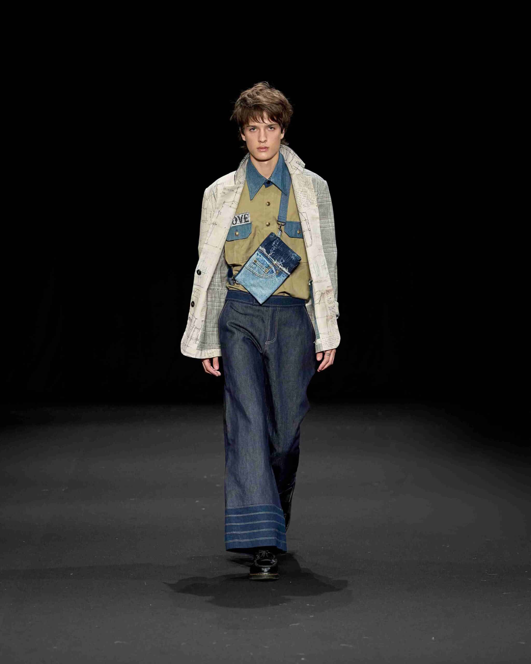 東京時裝周Story Wear 2026 SS 系列 Look 10,運用回收童子軍制服升級設計成全新的時尚單品。
