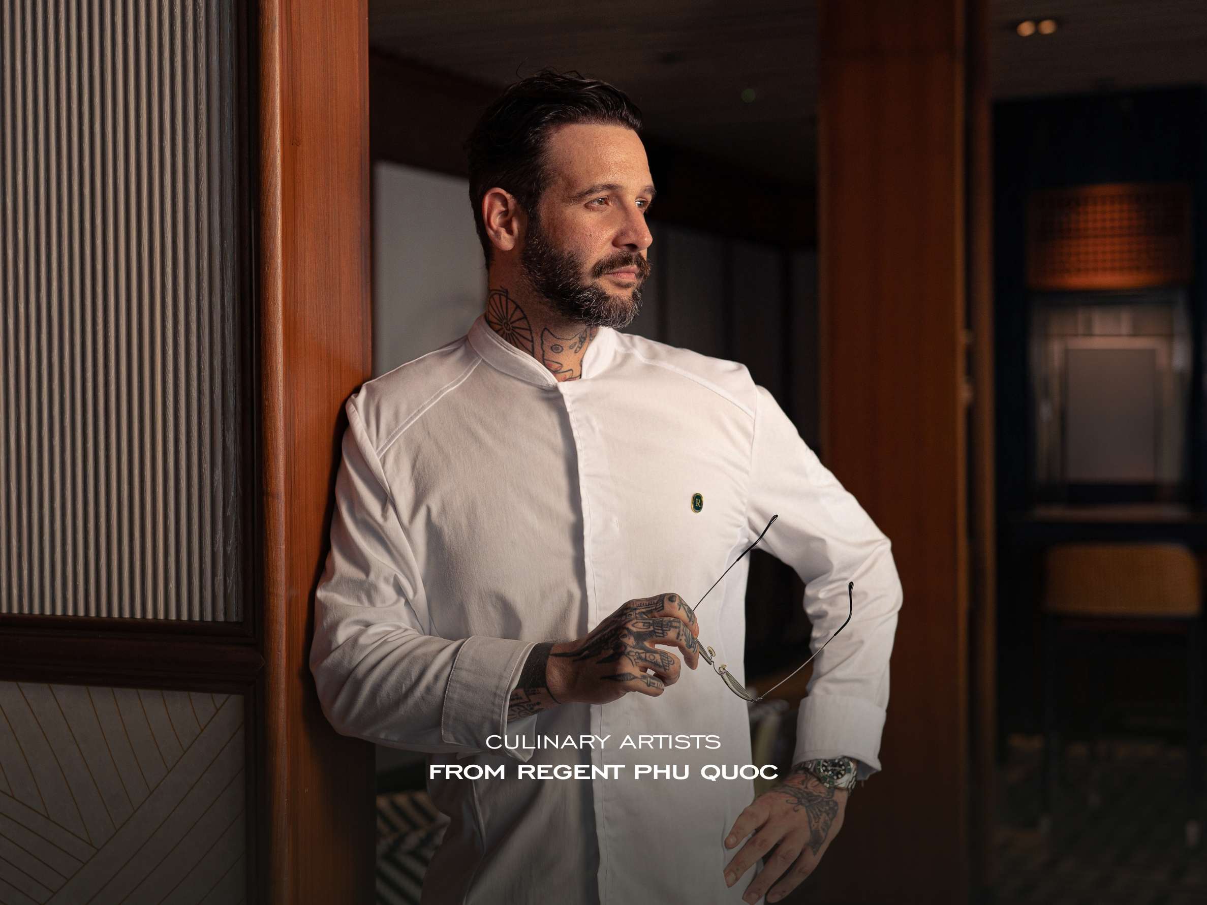 富國麗晶酒店行政總廚,帶領主廚團隊包括副行政總廚 Huan Tran、行政甜點主廚 Duyen Nguyen 及 Oku 餐廳主廚 Andy Huynh。