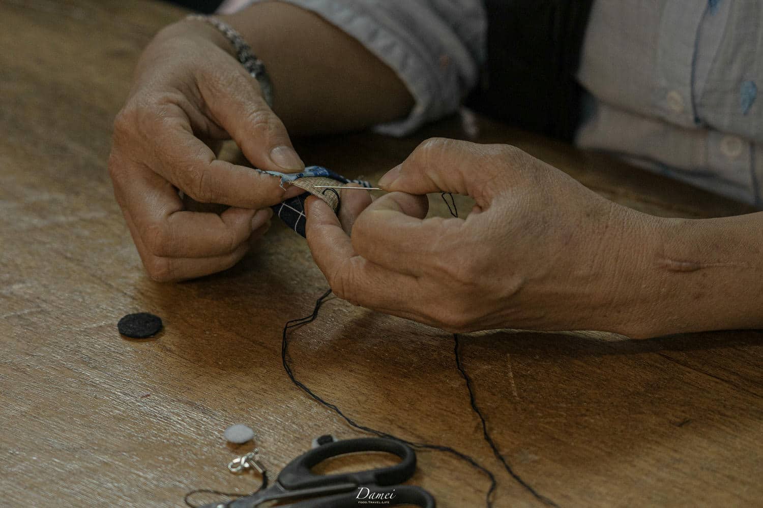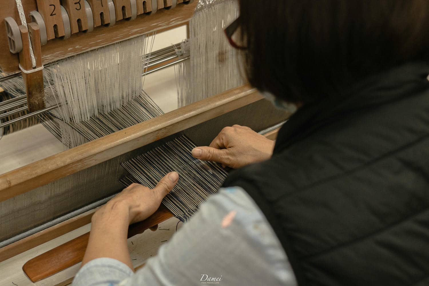 距離新社梯田車程不遠處,我們來到新社香蕉絲工坊,必須讚嘆先民利用易取得的素材製作所有日常必需品,這是葛瑪蘭人的傳統技藝,全手工製作加上費時,已是快要面臨消失的技藝了,好在還有一群媽媽阿姨們堅持著,讓這傳統編織工藝得以傳承。