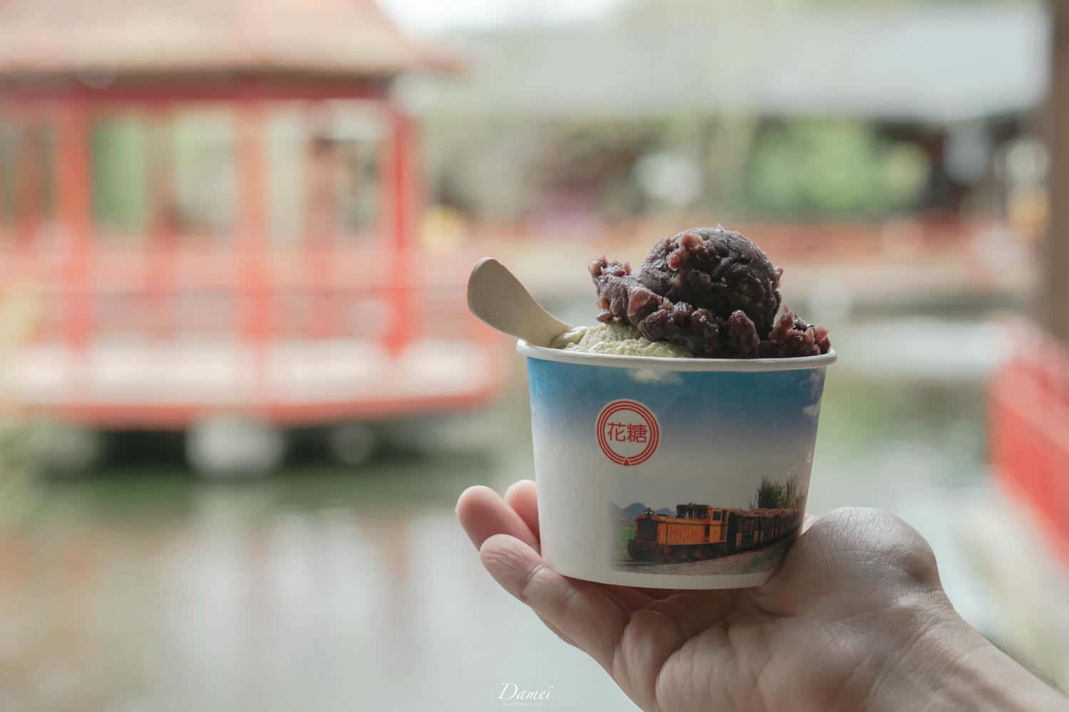 既然來到糖廠,不容錯過當然是冰品了,朋友點了紅豆抹茶冰補充方才在糖廠步行拍照的能量(笑)果然甜食不能少。
