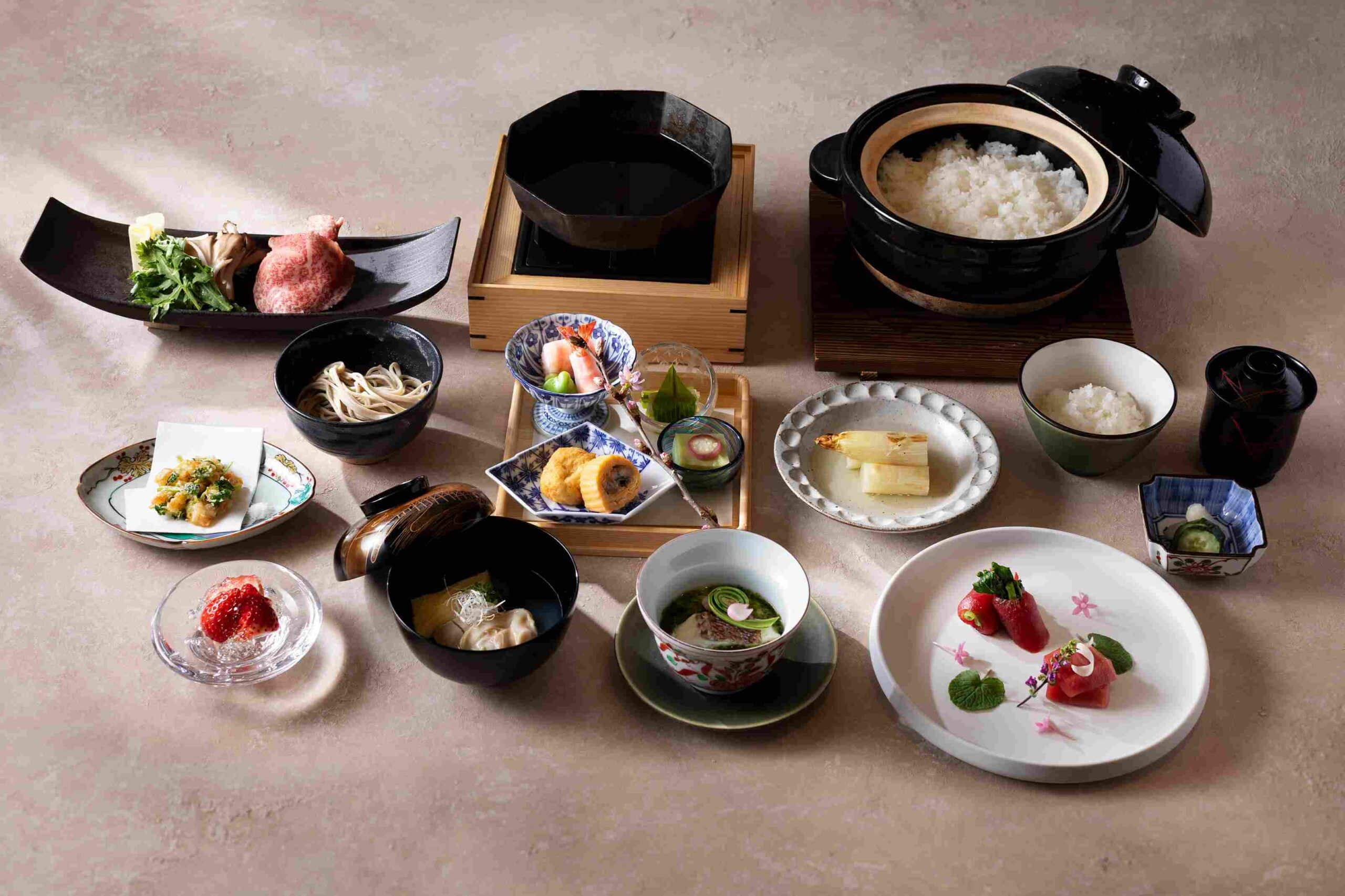 融合傳統工藝「組子」與水墨畫的象徵性藝術空間,讓旅人從踏入的瞬間起,便被非日常的寧靜所包圍。餐飲方面,餐廳嚴選以簽署合作協定的地方自治體為中心、由生產者直送的時令食材,並透過石窯烹調呈獻大地的恩賜。
